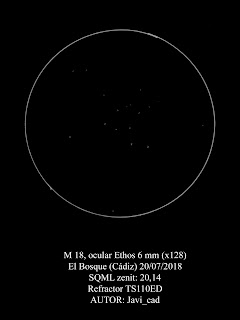 El Cúmulo abierto M18 (también conocido como Objeto Messier 18 o NGC 6613) es un cúmulo abierto de la constelación de Sagitario. Fue descubierto por Charles Messier en 1764, que lo incluyó en su catálogo. (fuente wikipedia).